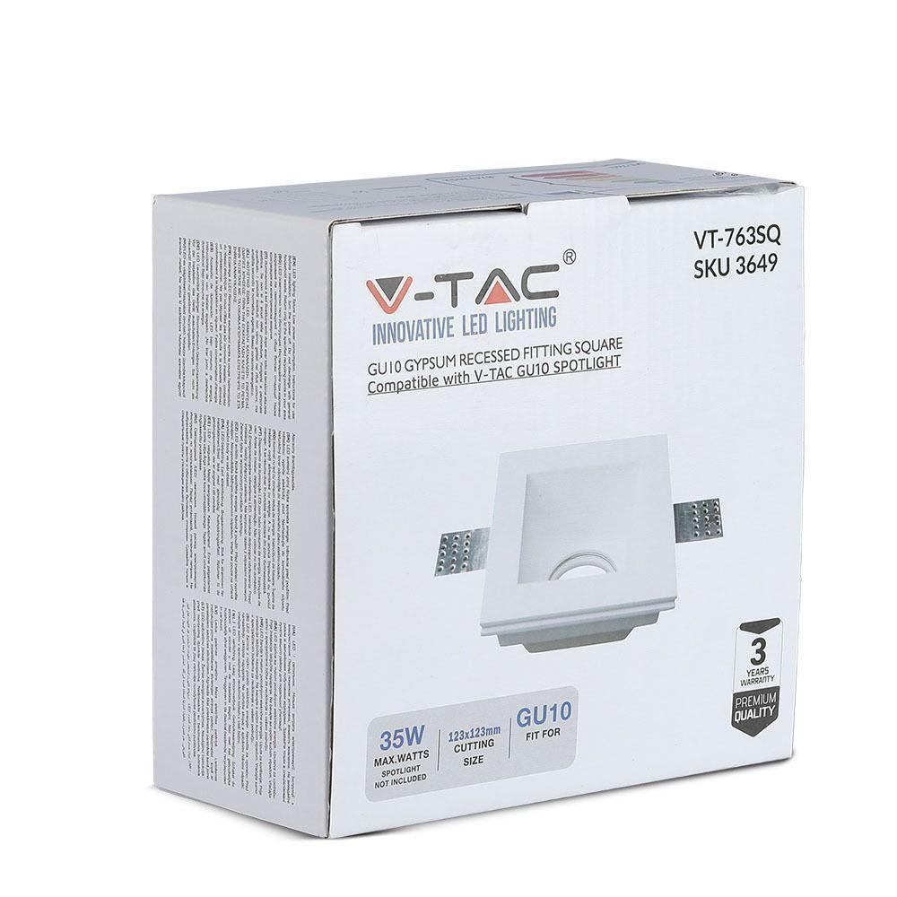 Oczko V-TAC GIPS GU10 Wpuszczane Kwadrat 120x120 Białe VT-763
