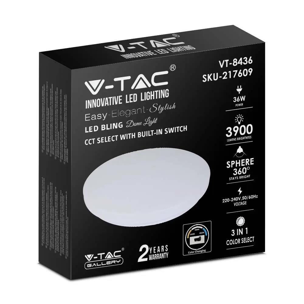 Plafon V-TAC 36W Mleczny Zmiana Koloru CCT fi.480 VT-8436-M-N 3000K-6400K 3900lm
