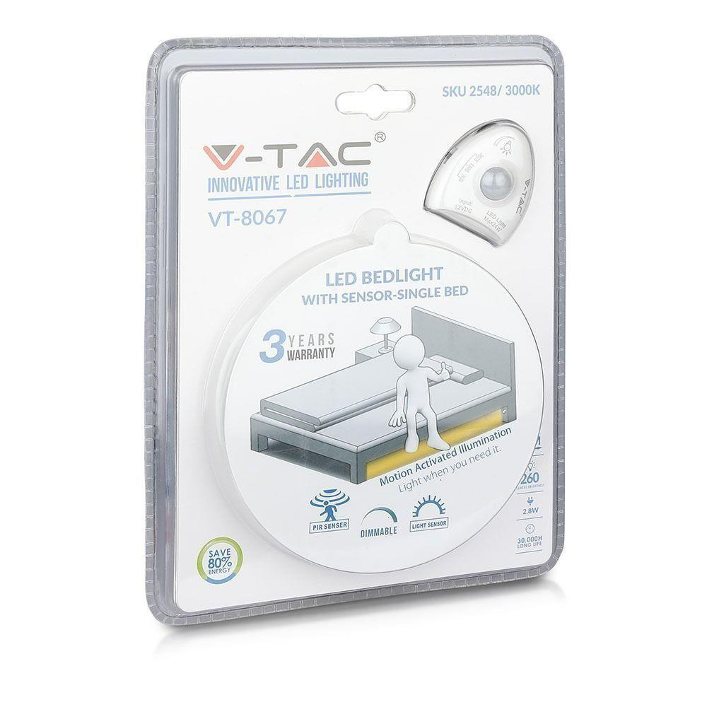 Nocne Oświetlenie LED V-TAC Czujnik Ruchu Pojedyncze Łóżko VT-8067 4000K 260lm 3 Lata Gwarancji
