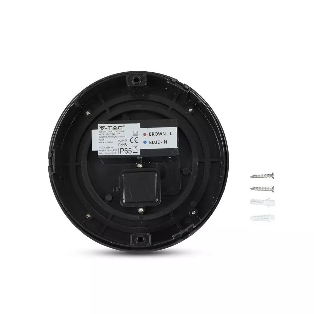 Oprawa Ścienna V-TAC 12W LED IP65 Czarna Okrągła VT-827 3000K 1155lm