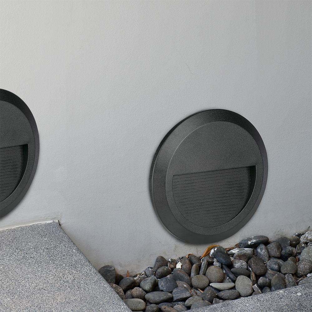 Oprawa Schodowa 2W LED V-TAC Czarna Okrągła 230V IP65 VT-1142 3000K 80lm