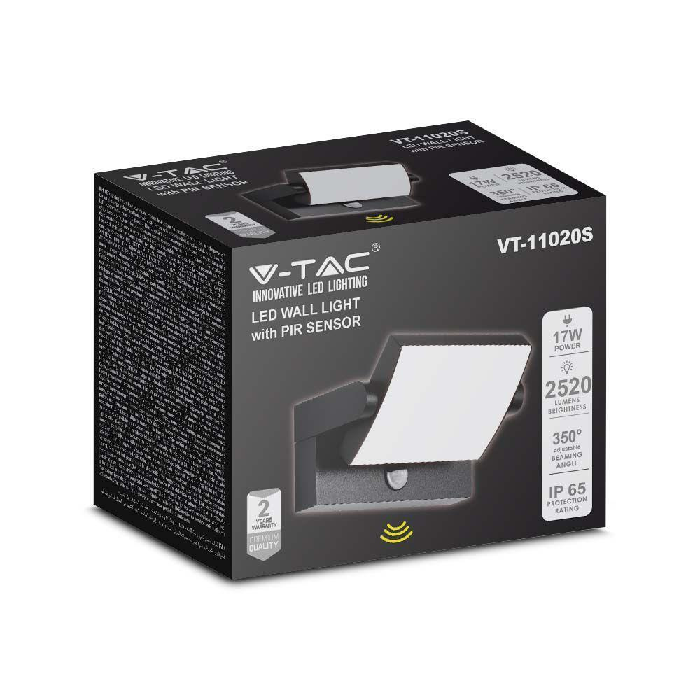 Projektor Oprawa Elewacyjna V-TAC 17W LED Czujnik Ruchu Czarna IP65 VT-11020S 3000K 2520lm