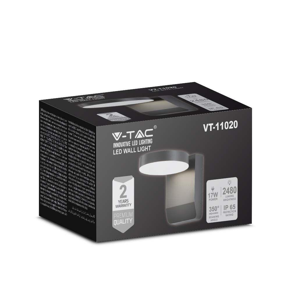 Projektor Oprawa Elewacyjna V-TAC 17W LED Okrągła Czarna IP65 VT-11020 3000K 2520lm