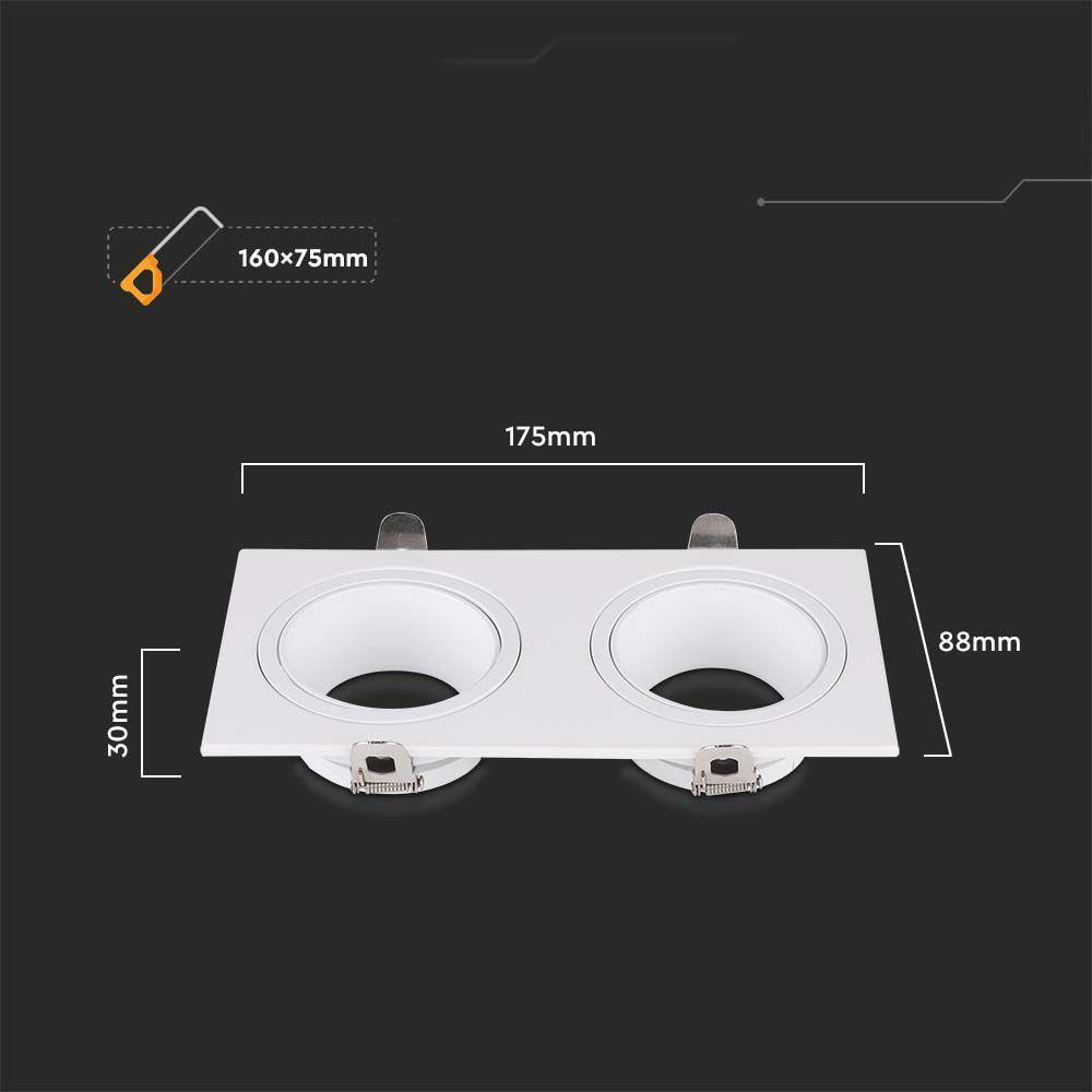 Oprawa Oczko V-TAC 2xGU10 Prostokąt Białe VT-439 3 Lata Gwarancji