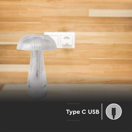 Lampka Biurkowa Nocna V-TAC 1W LED 25cm Ładowanie USB Ściemnianie Przezroczysta VT-1040 3000K-6000K 50lm