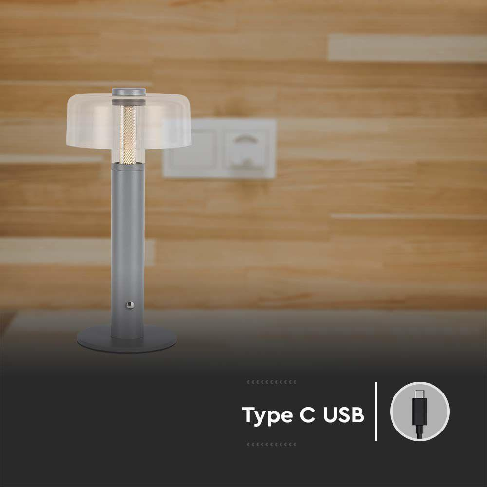 Lampka Biurkowa Nocna V-TAC 1W LED 30cm Ładowanie USB Ściemnianie Szara VT-1049 3000K 100lm