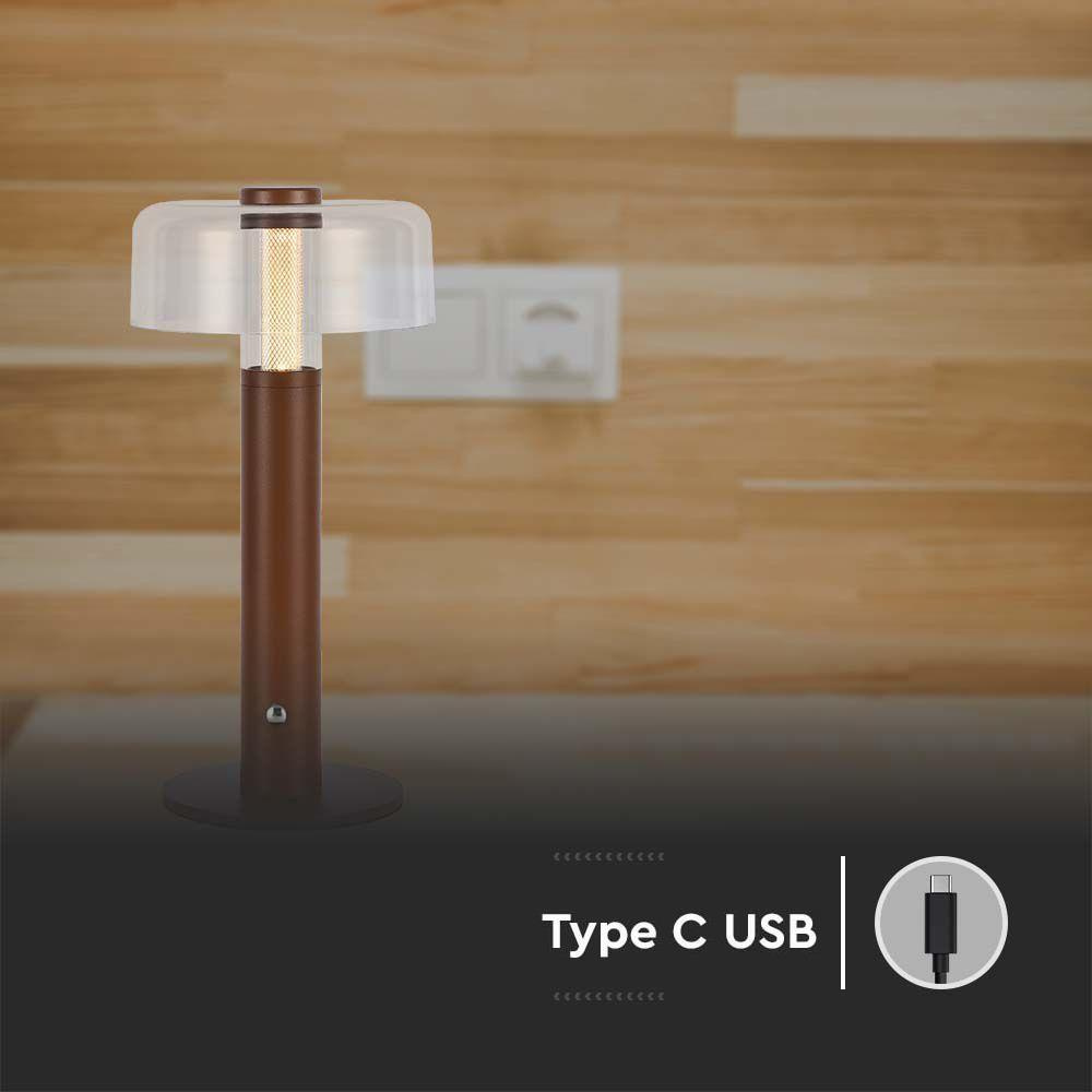 Lampka Biurkowa Nocna V-TAC 1W LED 30cm Ładowanie USB Ściemnianie Brązowa VT-1049 3000K 100lm