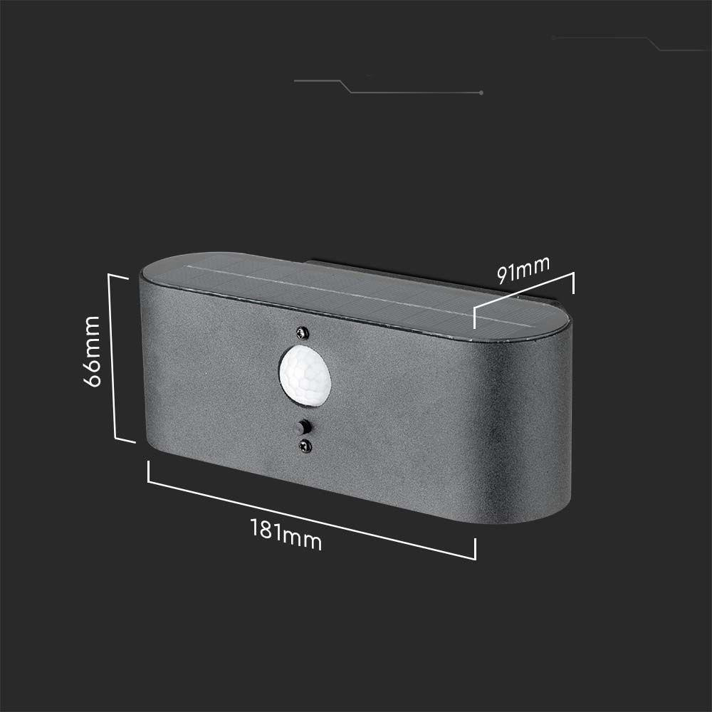 Kinkiet Ogrodowy Ścienny Solarny V-TAC 0.8W LED Czujnik Ruchu IP54 VT-1148 3000K 100lm 3 Lata Gwarancji