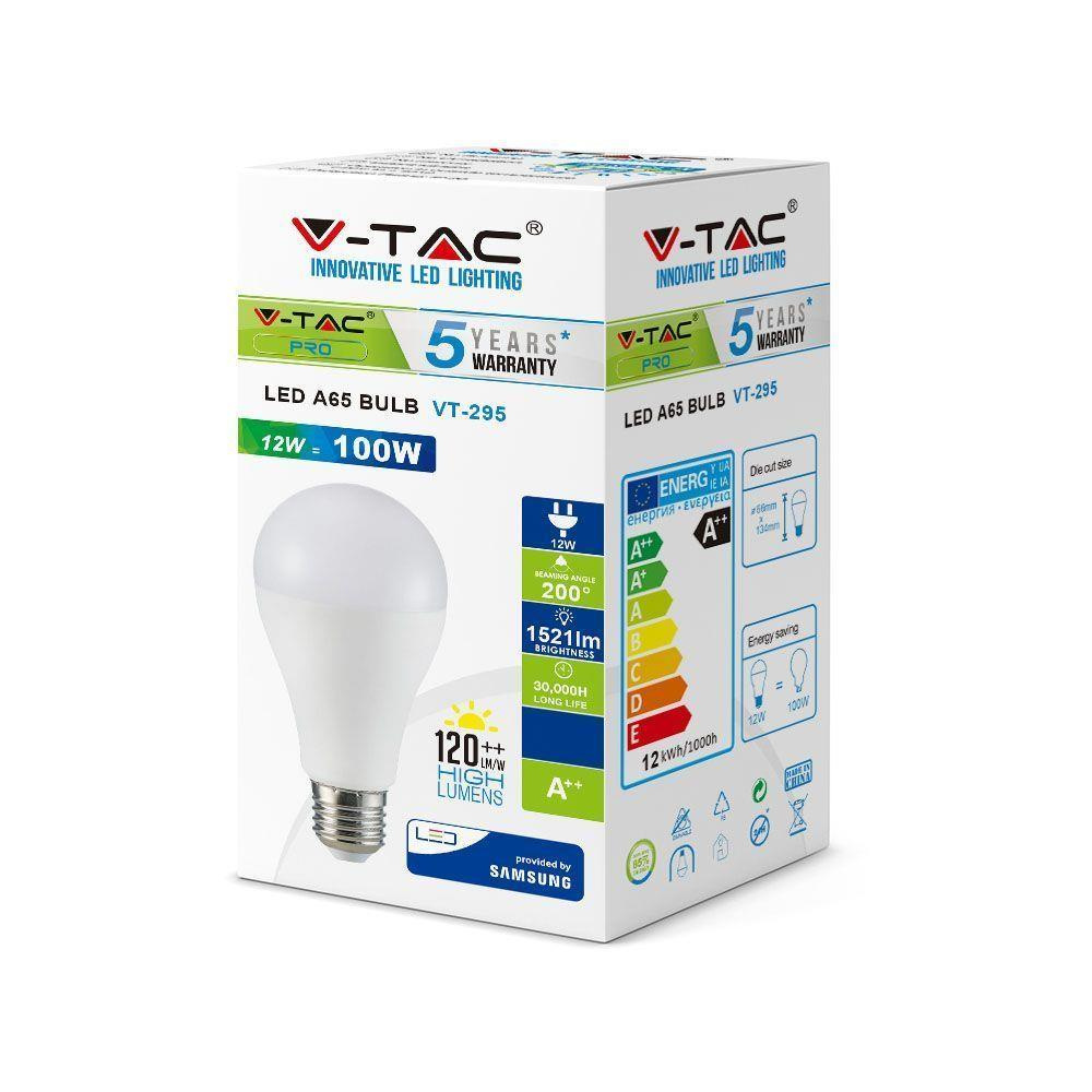Żarówka LED V-TAC SAMSUNG CHIP 12W E27 A65 VT-295 6400K 1521lm 5 Lat Gwarancji