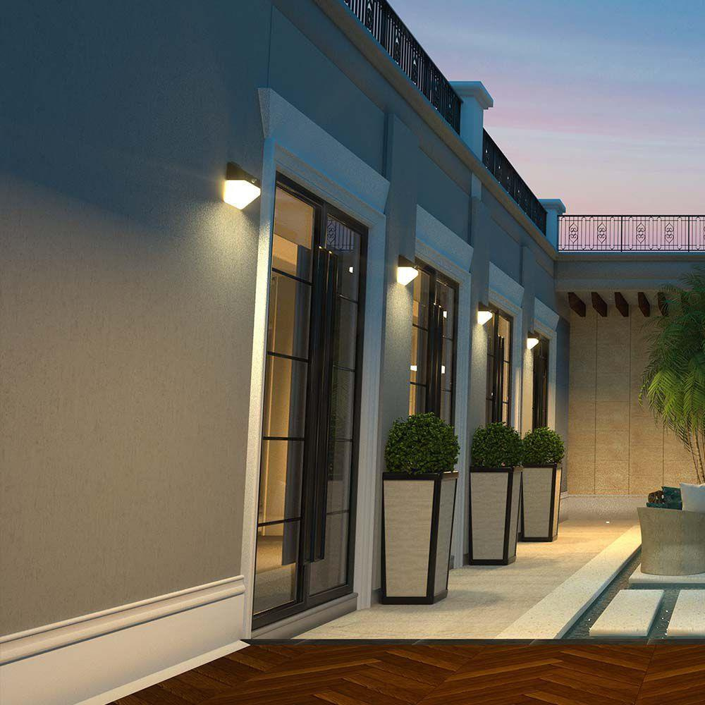 - Nowoczesna oprawa ścienna zasilana energią słoneczną