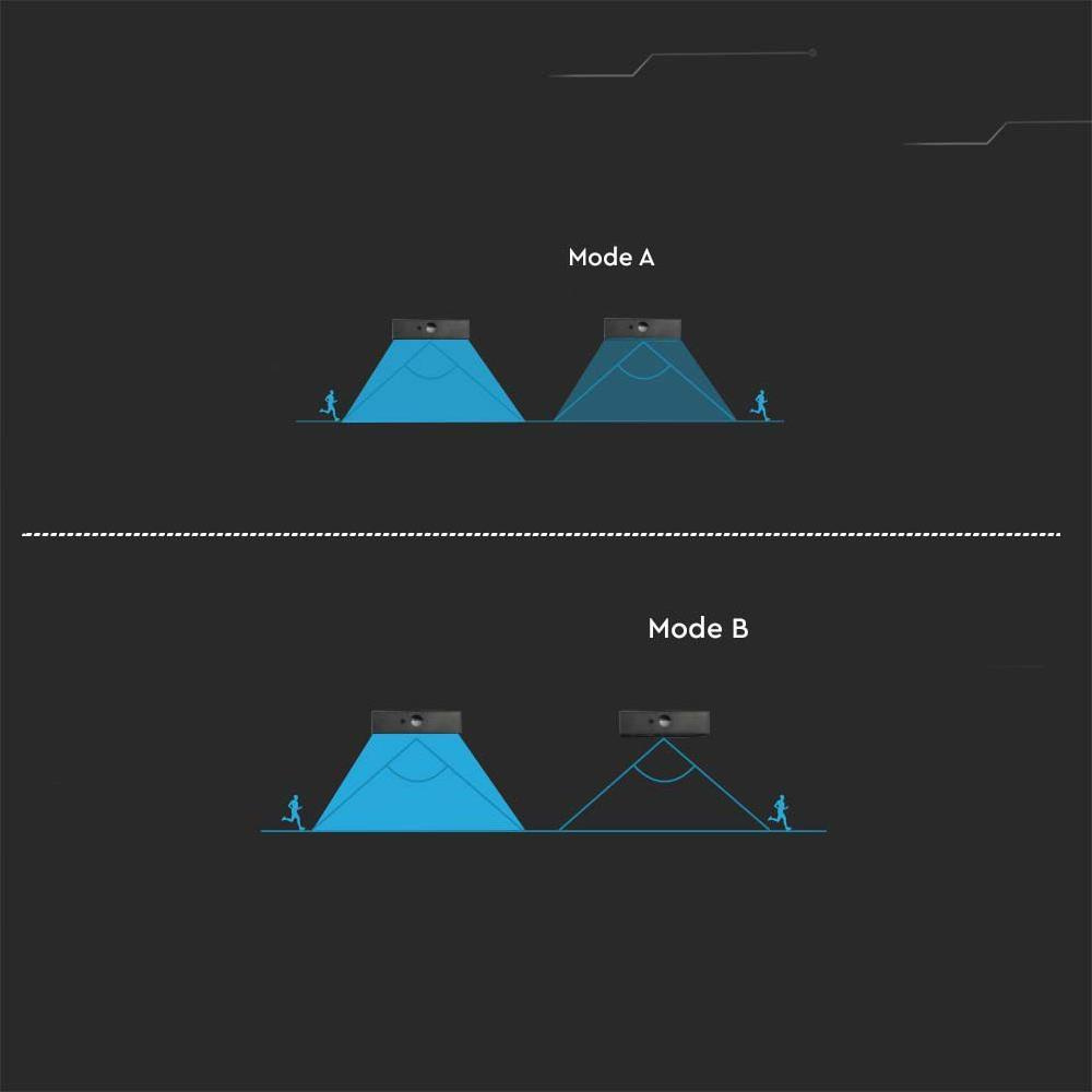 - - Tryb pracy stałej - lampa automatycznie uruchamia się z niską jasnością w nocy i włącza pełną jasność po wykryciu ruchu, a następnie przyciemnia po 10 sekundach braku ruchu