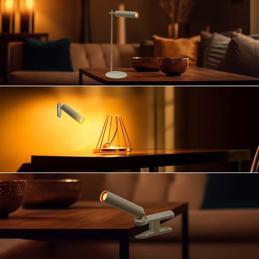 - Unikatowa forma 4w1, latarka, lampka biurkowa, klips oraz kinkiet w jednym