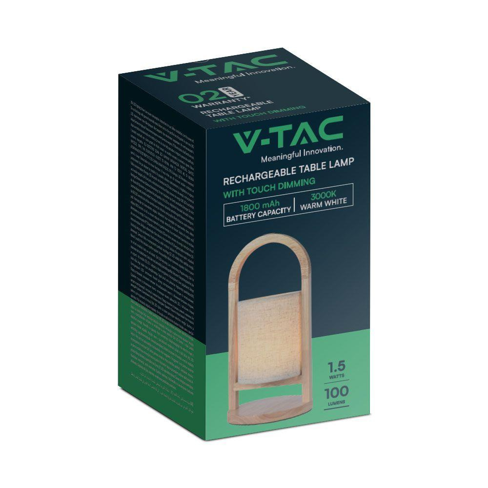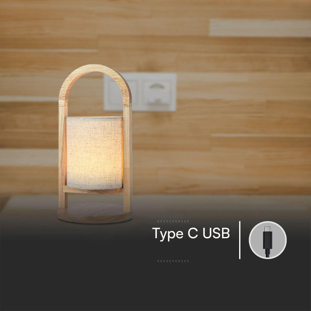 Lampka Biurkowa Nocna V-TAC 1,5W LED Ładowanie Ściemnianie Drewno