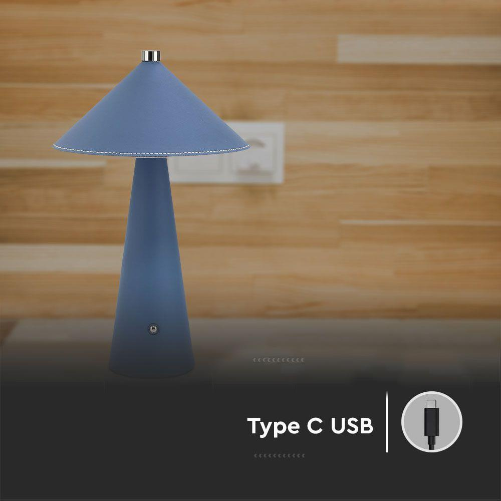 Lampka Biurkowa Nocna V-TAC 3W LED 33cm CCT Ładowanie USB-C Ściemnianie Niebieska Skóra