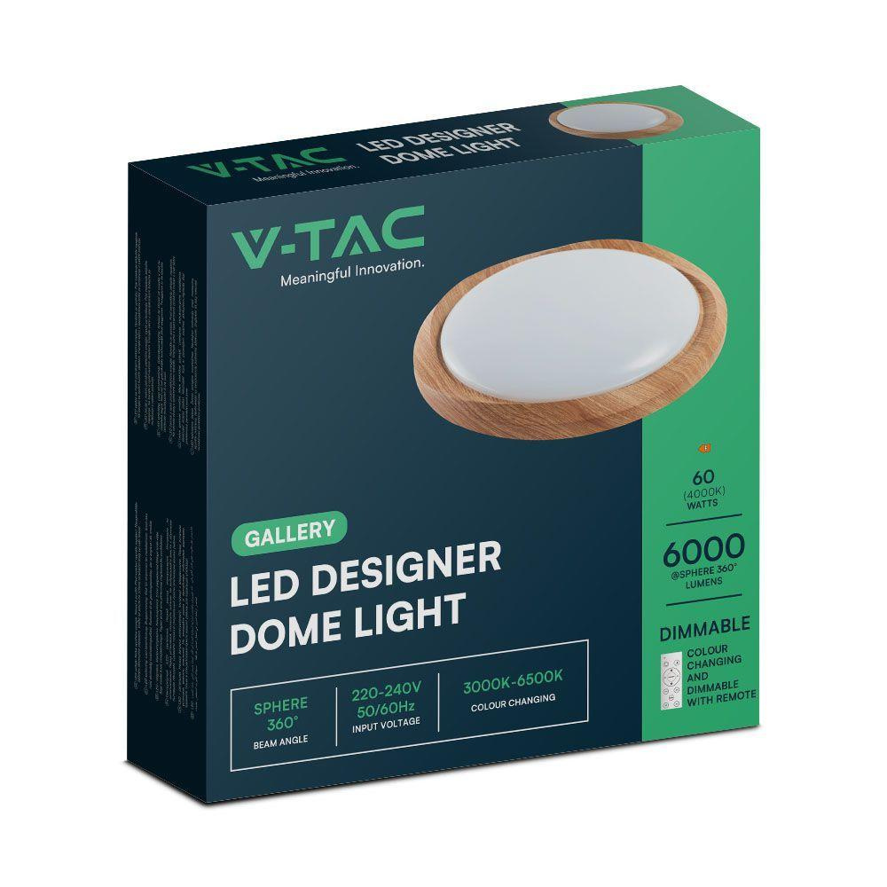 Plafon V-TAC 60W DREWNO fi.49cm CCT Pilot TIMER VT-8559 3000K-6500K 6000lm