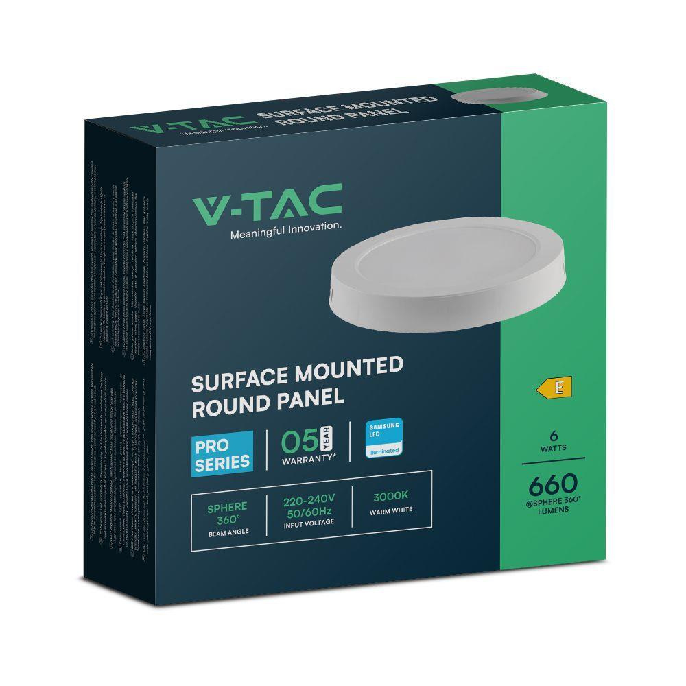Panel Natynkowy V-TAC 6W LED SAMSUNG CHIP Okrągły 121x30mm VT-60006RD-S 3000K 660lm 5 Lat Gwarancji