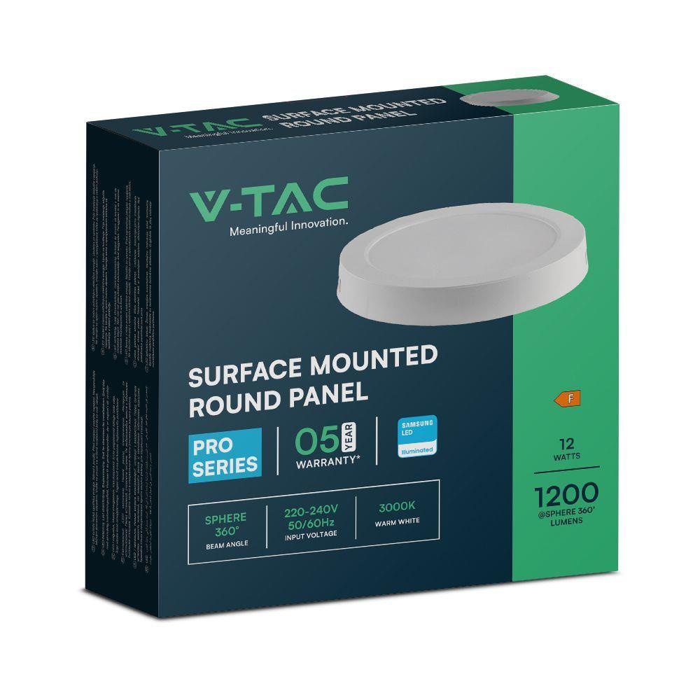 Panel Natynkowy V-TAC 12W LED SAMSUNG CHIP Okrągły 167x30mm VT-60012RD-S 6500K 1200lm 5 Lat Gwarancji
