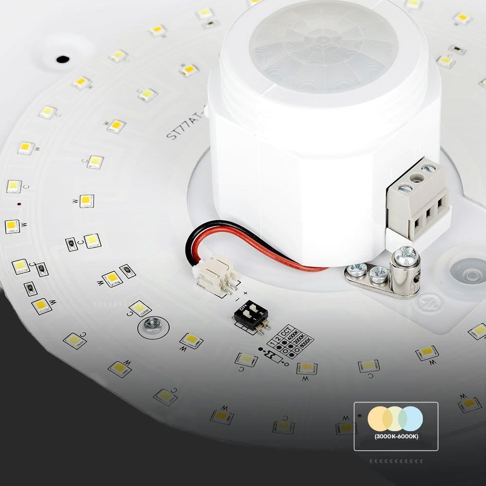 Plafon LED V-TAC SAMSUNG CHIP 12W 29cm Czujnik Ruchu CCT Okrągły Biały VT-13CCT 3000K-4000K-6000K 900lm 5 Lat Gwarancji