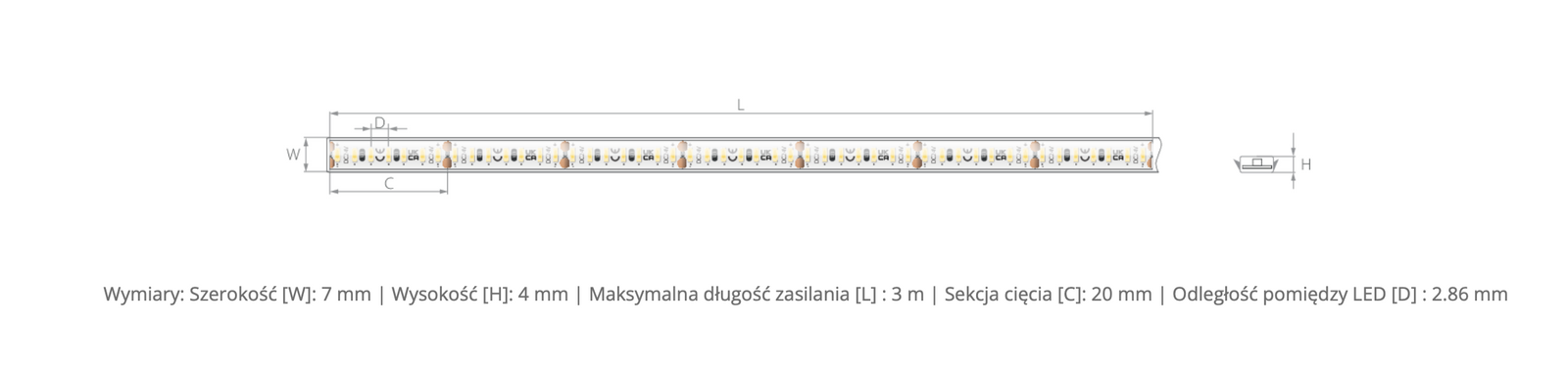 Taśma LED hermetyczna KWP-5KSHD35-0960-24 ciepła 3500K ultracienka 7mm 9,6W/m 24V