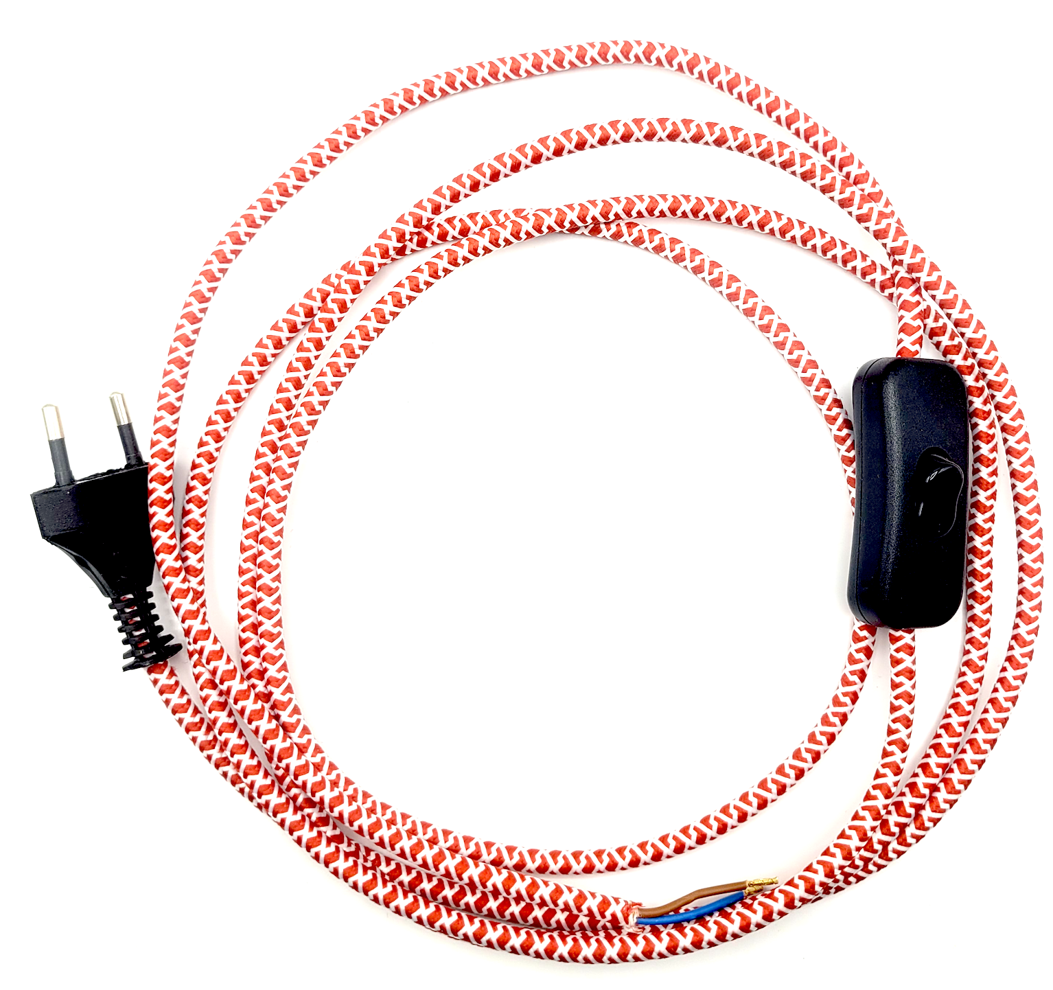Przewód w oplocie dekoracyjnym 2,5m z włącznikiem biało-czerwony