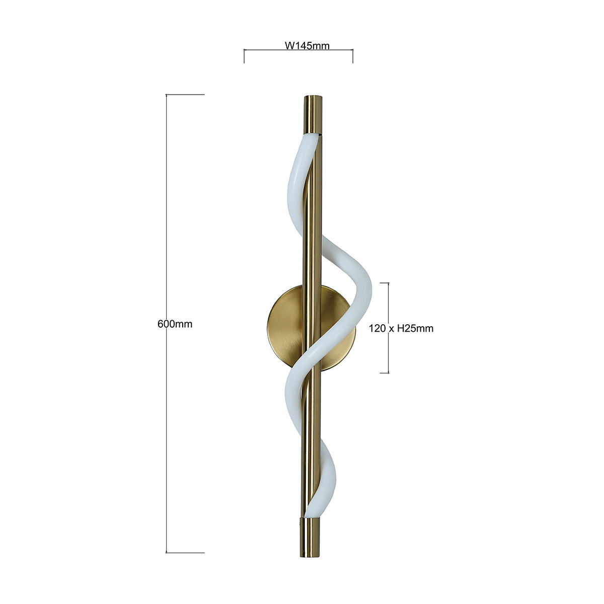 ,Kinkiet Meleca to nowoczesna oprawa ścienna wykonana z metalu w kolorze złota. Klosz w postaci spiralnie skręconej tuby wykonano z elastycznego akrylu.