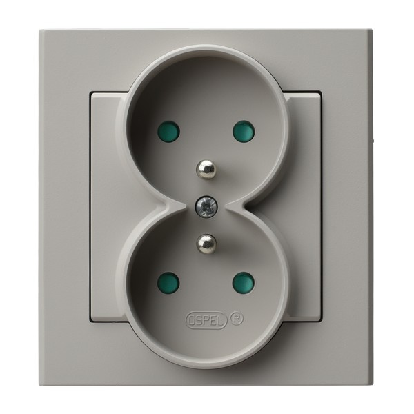 Ospel Sonata Kaszmir Gniazdo podwójne z uziemieniem z przesłonami torów prądowych, kompletne z ramką GP-2RZP/82
