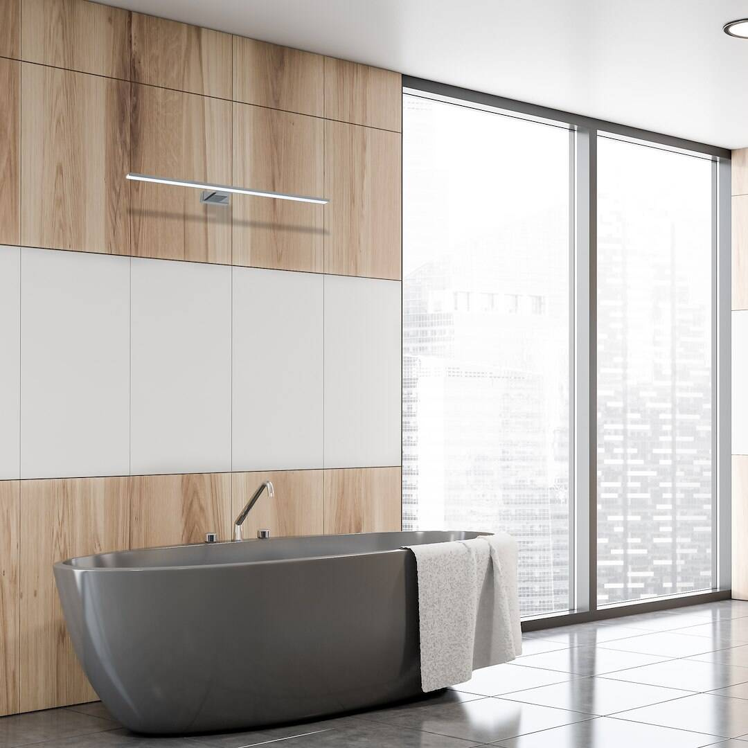 Kinkiet jest chroniony przed pyłem i wilgocią, dlatego świetnie nadaje się do powieszenia w łazience nad lustrem, nawet w okolicy zlewu. Lampę można wykorzystać również we wnętrzach komercyjnych, na przykład w salonie kosmetycznym. Minimalistyczny design będzie odpowiedni do nowoczesnych wnętrz.