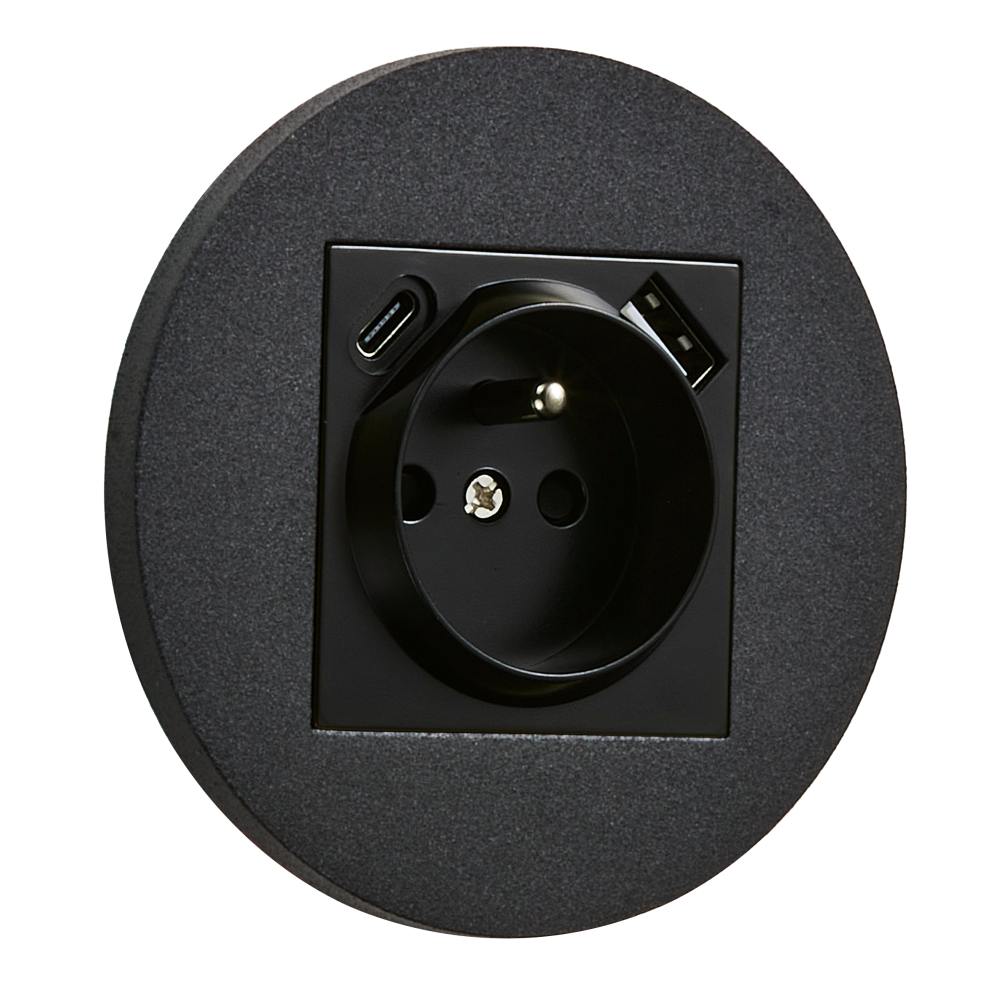 Gniazdo z bolcem podtynkowe okrągłe metalowe + USB+USBC TOGGLICA ROUND czarny mat