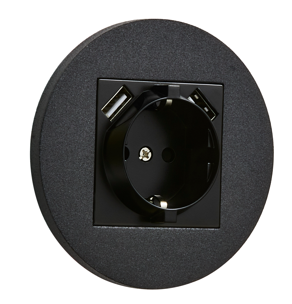 Gniazdo schuko podtynkowe okrągłe metalowe + 2xUSB TOGGLICA ROUND czarny mat