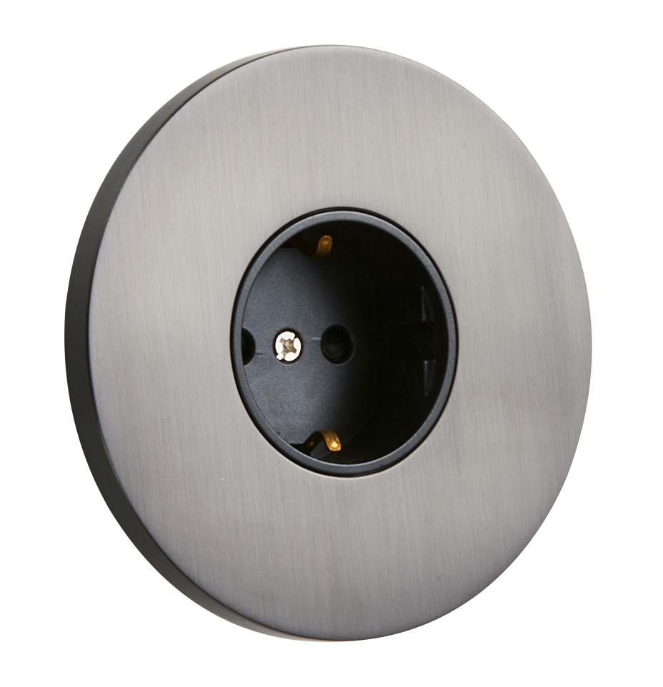 Gniazdo schuko podtynkowe okrągłe metalowe TOGGLICA ROUND grafit szczotkowany