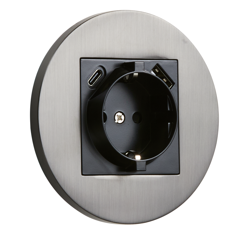 Gniazdo schuko + USB + USBC podtynkowe okrągłe metalowe TOGGLICA ROUND grafit szczotkowany