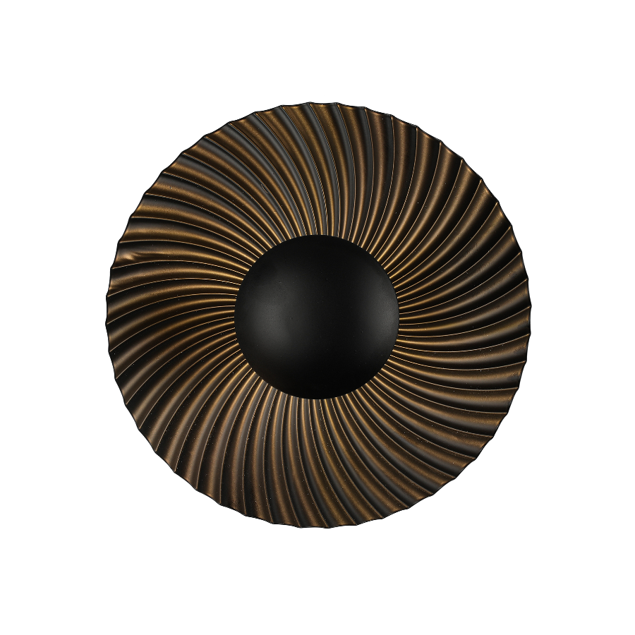 Styl i design: Spiralna forma w eleganckim, czarnym wykończeniu.Materiały i wykonanie: Metal o matowej strukturze.Wymiary: Średnica 25 cm.Źródło światła: 1xG9 (żarówka wymienna).Kolor: Czarny mat.Zastosowanie: Salon, sypialnia, przedpokój, korytarz – wnętrza w stylu nowoczesnym, loftowym lub klasycznym.