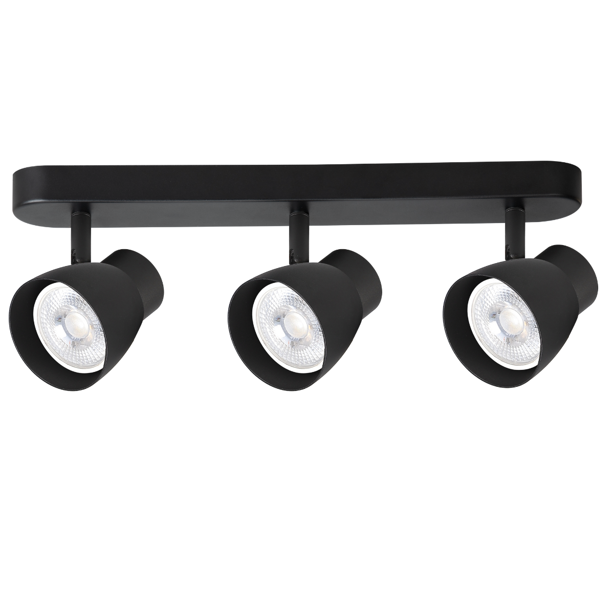 Styl i design: Minimalistyczny spot z trzema ruchomymi głowicami.Materiał: Metal.Wymiary: 38 × 7 × 10,5 cm.Źródło światła: 3 × GU10, max LED 8W (wymienne).Kolor: Czarny mat.Zastosowanie: Oświetlenie punktowe i dekoracyjne – salon, kuchnia, biuro, korytarz, garderoba.