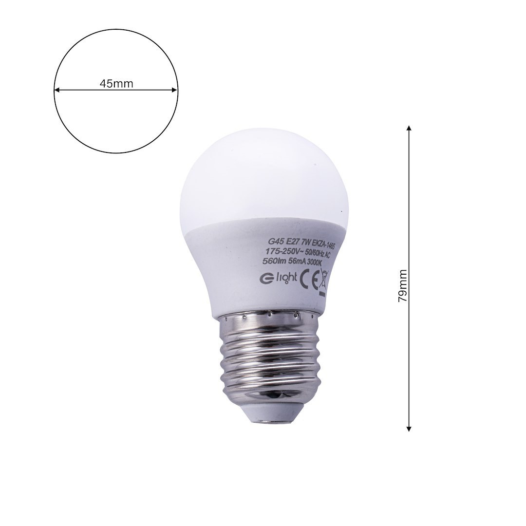 ,Żarówka Led E27 G45 7W mała kulka jest energooszczędnym odpowiednikiem tradycyjnej żarówki i pozwala zaoszczędzić, aż do 80% energii w porównaniu do standardowego oświetlenia.