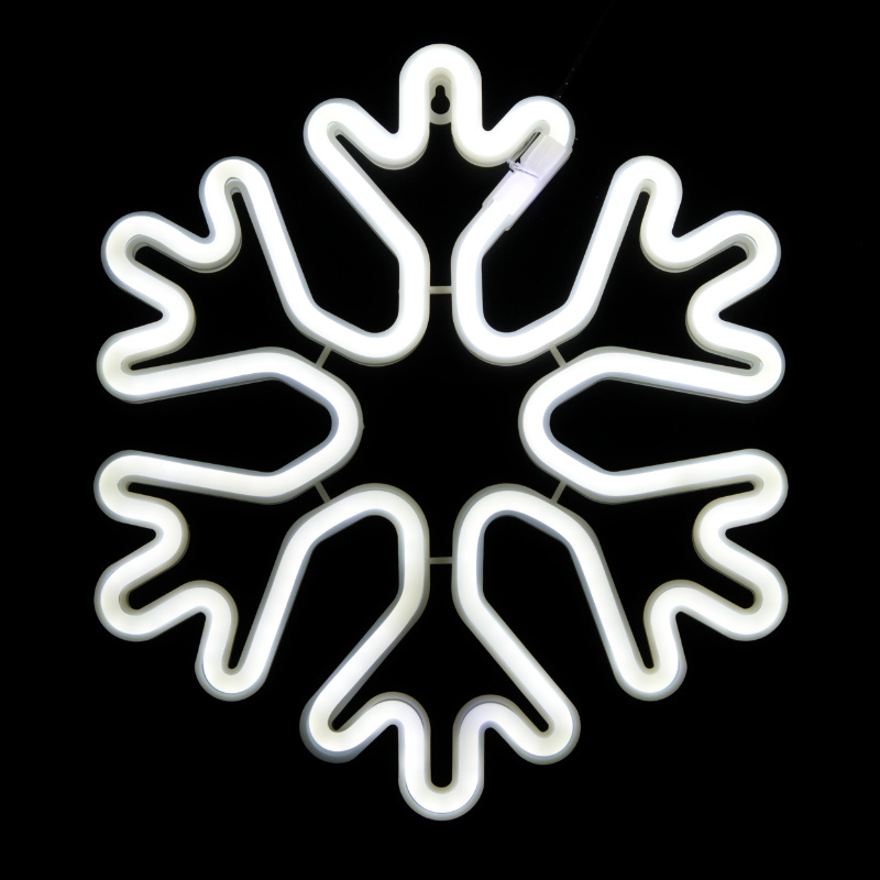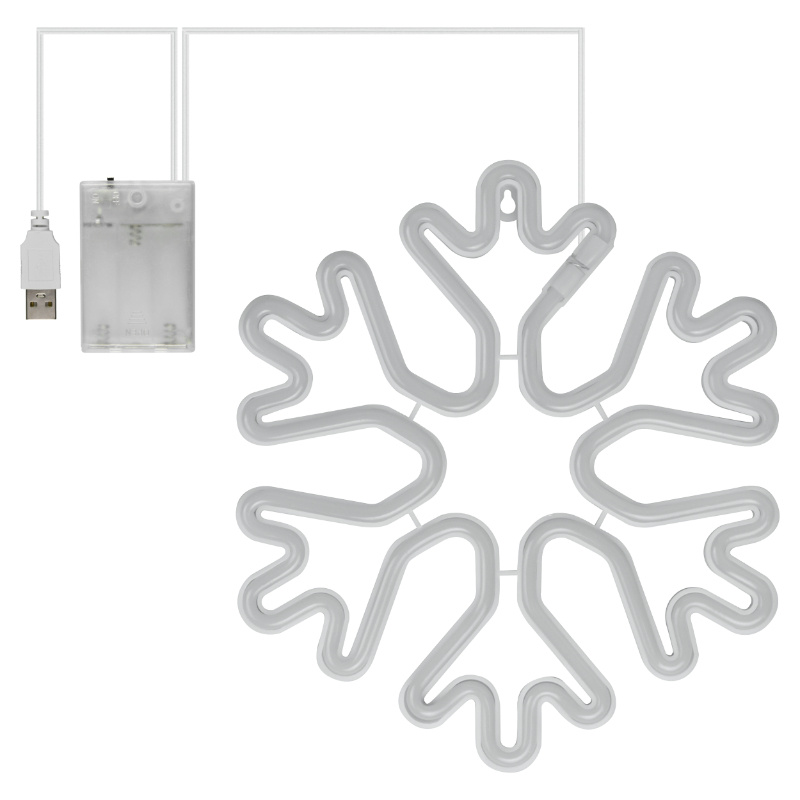 ,Neon dekoracyjny LED "śnieżynka". Zasilanie: bateryjne (3 x AA - brak w zestawie) lub USB (DC 5 V, 1 A). Wyłącznik zasilania. Wymiary: 26,5 x 30 cm. Opakowanie: pudełko.