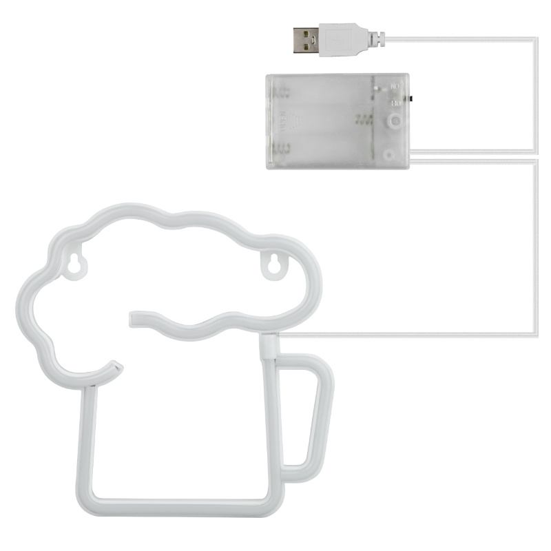 ,Neon dekoracyjny LED " piwo ". Zasilanie: bateryjne (3 x AA - brak w zestawie) lub USB (DC 5 V, 1 A). Wyłącznik zasilania. Wymiary: 40 x 24 cm. Opakowanie: pudełko.