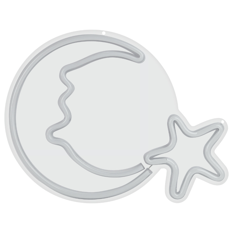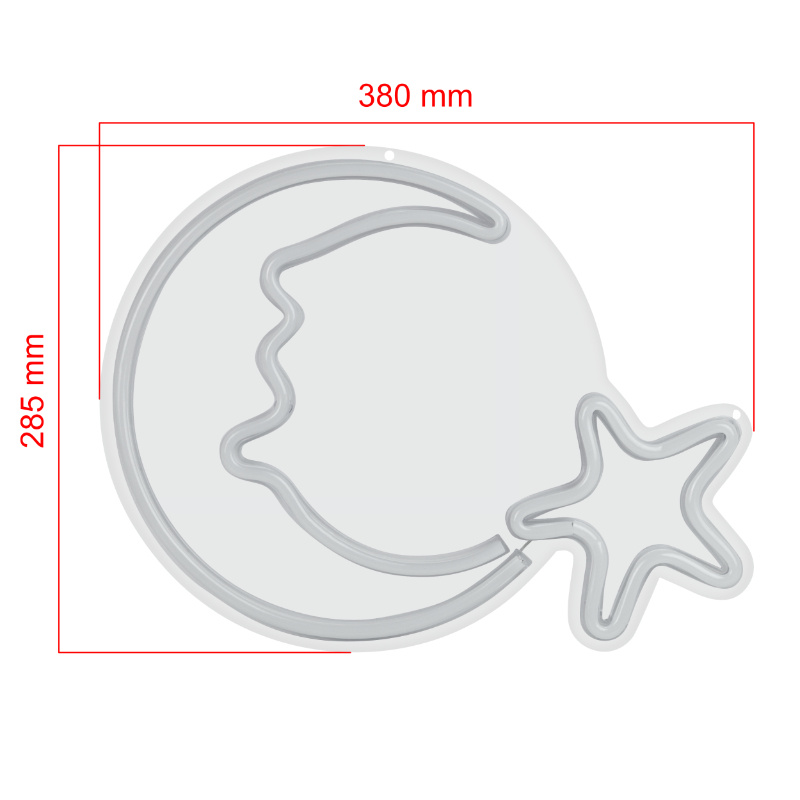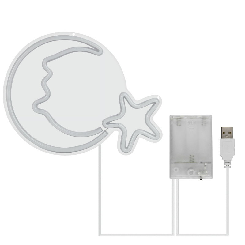 ,Neon dekoracyjny LED "księżyc". Zasilanie: bateryjne (3 x AA - brak w zestawie) lub USB (DC 5 V, 1 A). Wyłącznik zasilania. Wymiary: 42,5 x 13,7 cm. Opakowanie: pudełko.