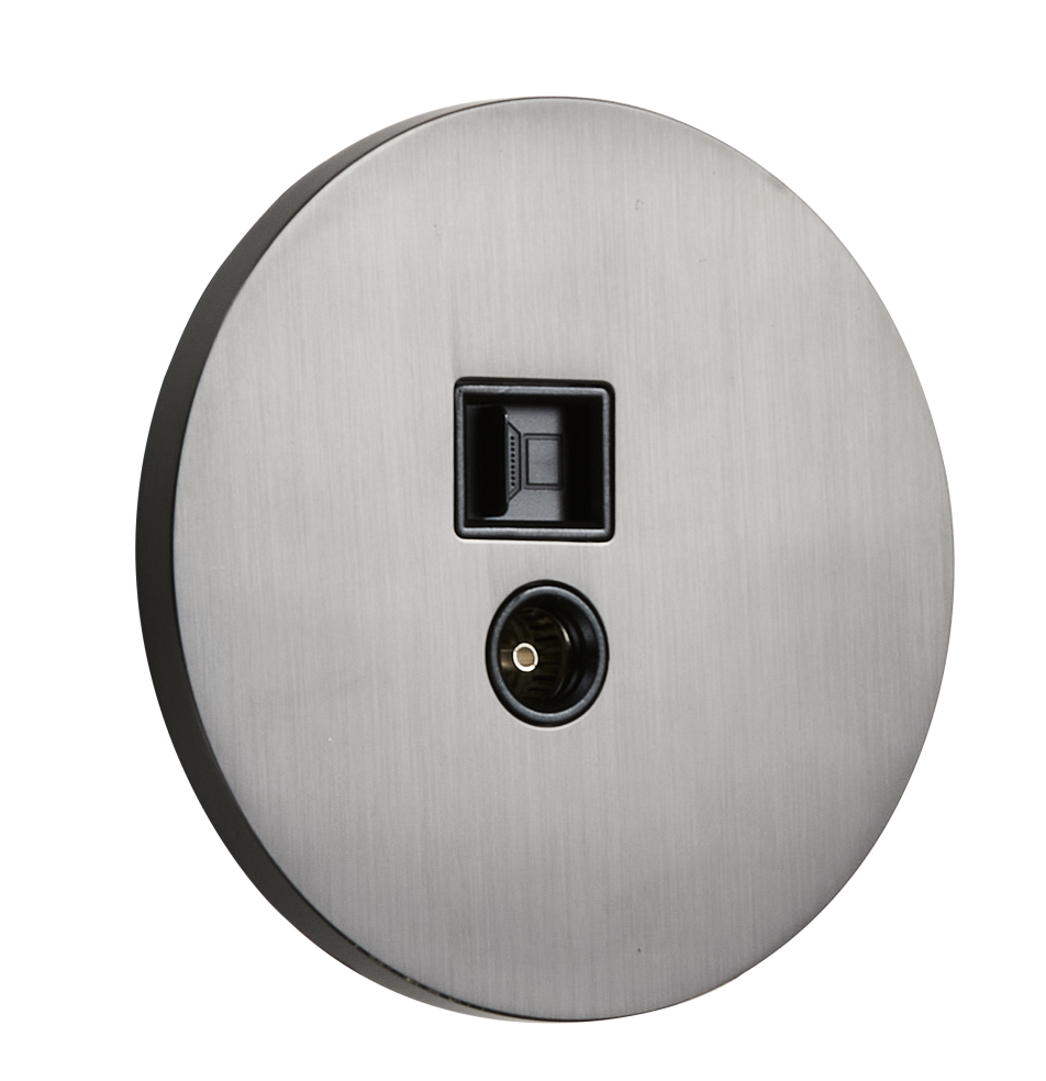 Gniazdo TV/RJ45 podtynkowe okrągłe metalowe TOGGLICA ROUND grafit szczotkowany