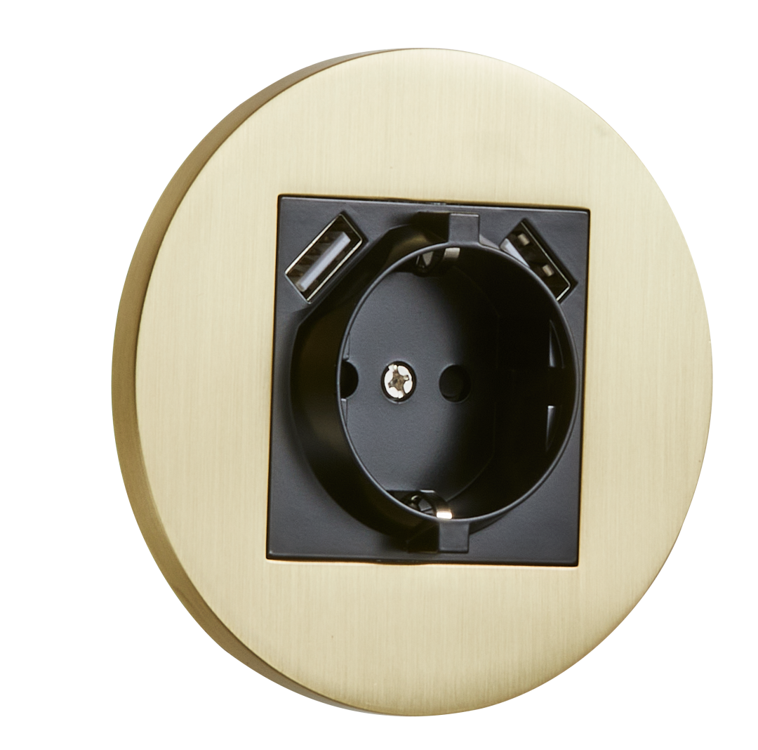 Gniazdo Schuko + 2xUSB podtynkowe okrągłe metalowe TOGGLICA ROUND złoty szczotkowany