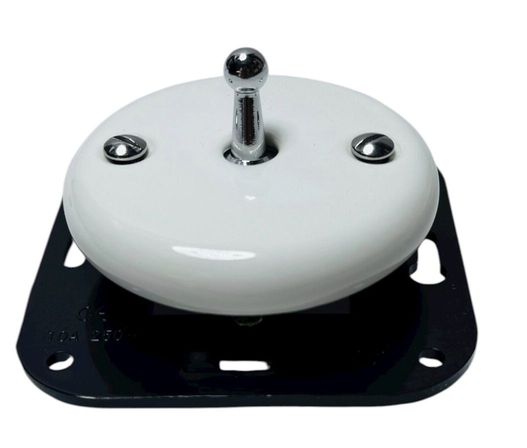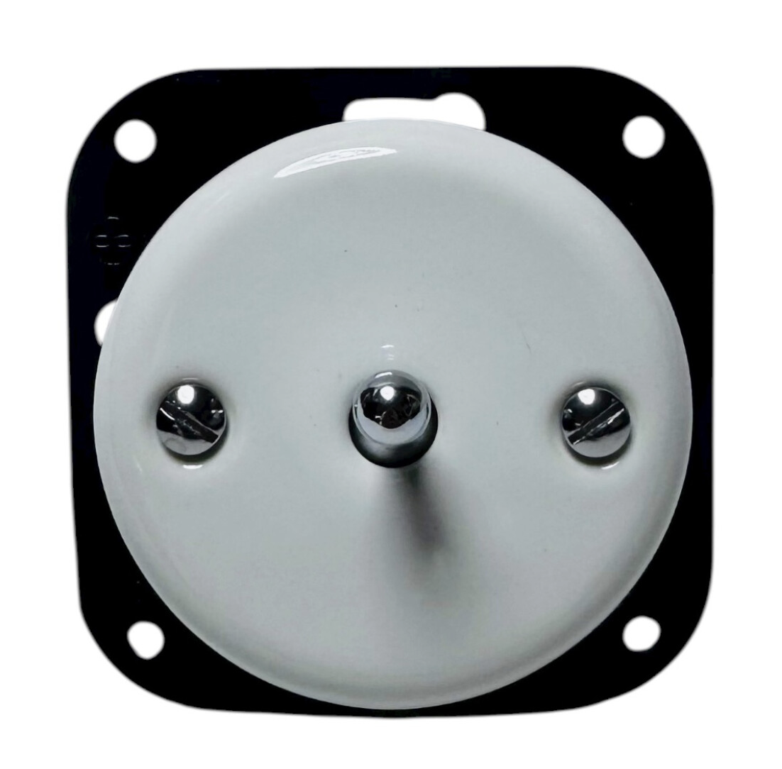 ,Elegancki włącznik pojedynczy schodowy ceramiczny. Montaż: podtynkowyy. Prezentowany włącznik jest sprzedawany bez ramki - co pozwala na samodzielne skomponowanie zestawu pojedynczego, podwójnego a nawet potrójnego ( ramkę drewnianą bądź ceramiczną można dokupić.) Kolor: biały/ srebrny