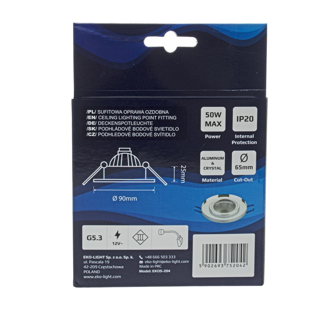 Oczko sufitowe szklane OKRĄGŁE. Kolor: SREBRNY