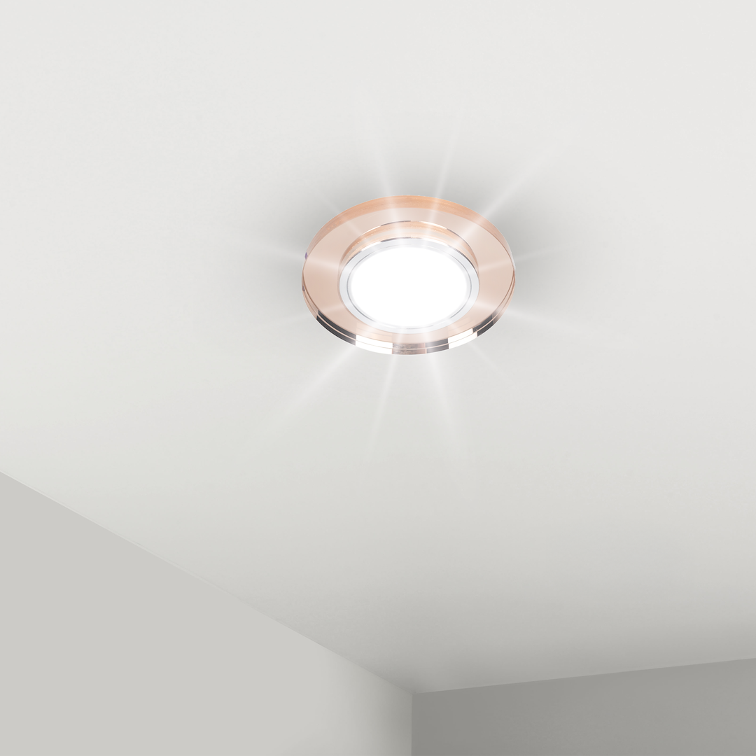 Oczko sufitowe szklane OKRĄGŁE. Kolor: Bursztyn . Nowość w gamie Firmy Eko-Light, doskanale wykończone oczka szklane, które ozdobią każdą powierzchnie . Przy pomocy tego asortymentu możemy oświetlić/doświetlić każde pomieszczenie, w którym zarówno ściany jak i sufit został wykonany z płyt osb lub z płyt kartonowo-gipsowych. Główną zaletą tego produktu jest prostota i duża funkcjonalność . Oczko wykonane jest z materiałów najwyższej jakości . Powłoka któą został pokryty produkt jest trwały, dzięki czemu zainstalowany asortyment w Państwa domu, będzie słóżył przez wiele lat. Do oprawy należy dokupić odpowiednią żarówkę o symbolu Gu10, oraz oprawkę ceramiczną, dzięki której będziemy mogli zasilić żarówkę napięciem 230V . Może to być żarówka GU10 przystosowana do napięcia 230V. Cały asortyment potrzebny do zainstalowania oprawy kupią Państwo na naszej platformie internetowej ( b2b.eko-light.com )