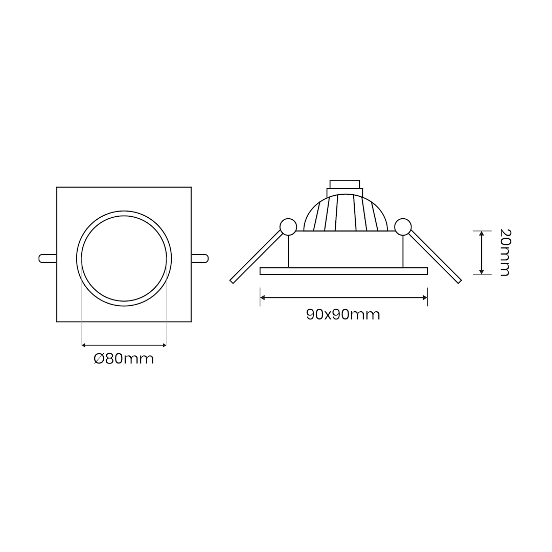 Oczko sufitowe szklane KWADRATOWE. Kolor: BIAŁY