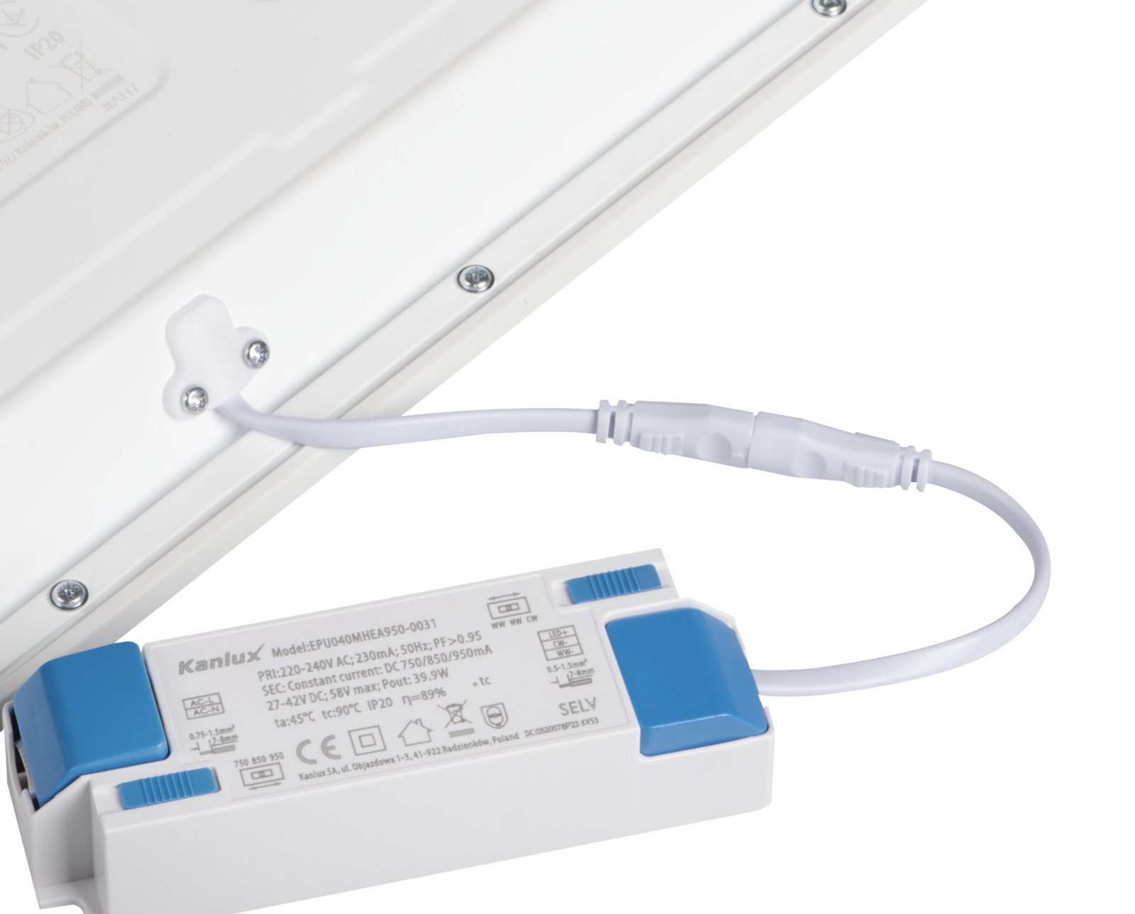,Panele BLINGO AIO to uniwersalne rozwiązanie typu All-In-One, które zastępuje wiele wariantów paneli LED jednym produktem. Umożliwiają regulację temperatury barwowej (3000K, 4000K, 6500K) i mocy (32W/36W/40W), dostępne są w dwóch rozmiarach (60x60 cm i 120x30 cm). Oferują wysoką jakość światła (CRI>90, do 123 lm/W), niski poziom olśnienia w wersji z kloszem mikropryzmatycznym (UGR<19), a także prosty montaż, trwałość do 50 000 h i 5-letnią gwarancję.