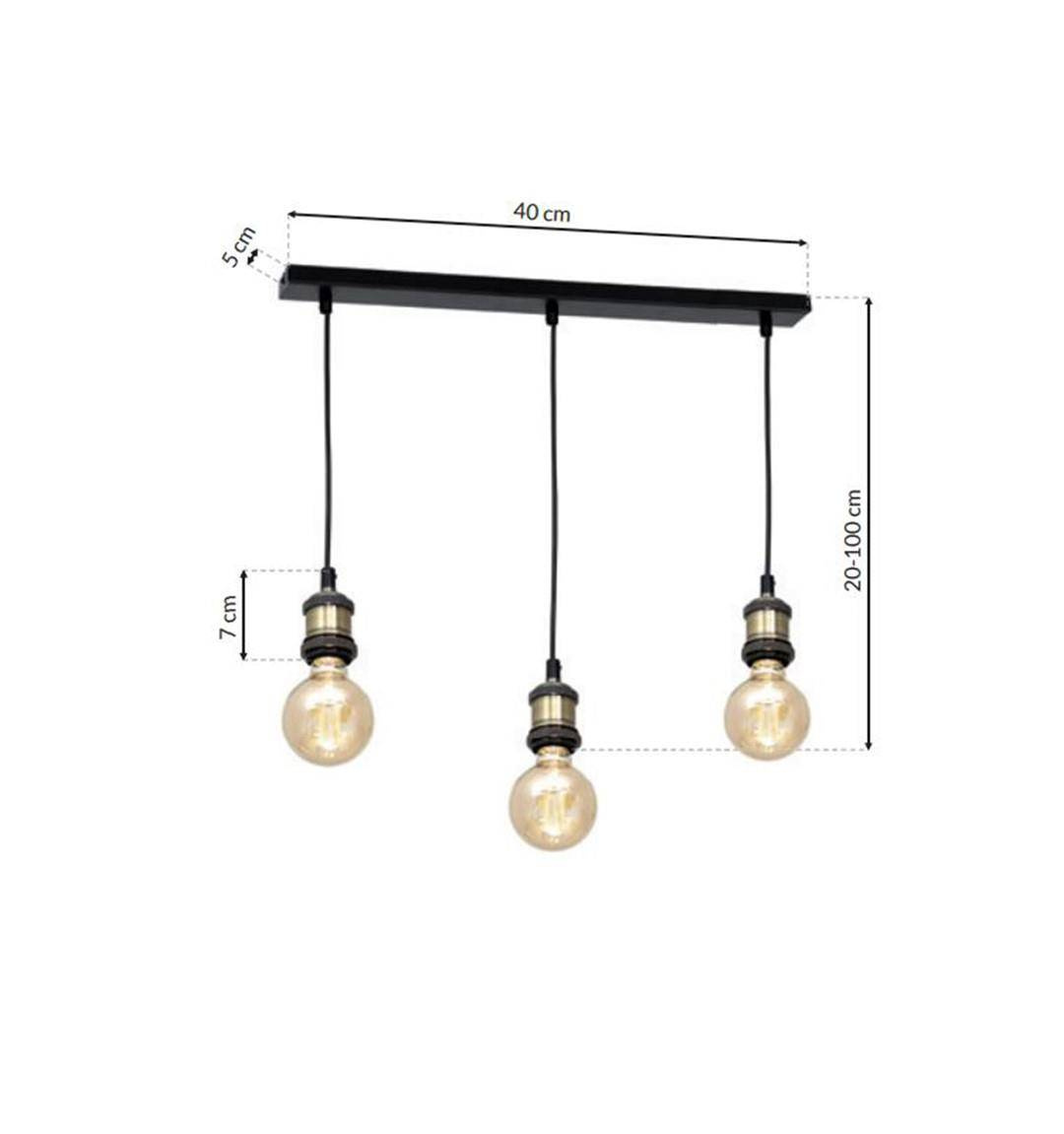 Lampa wisząca EDISON CZARNY/MOSIĄDZ 3xE27
