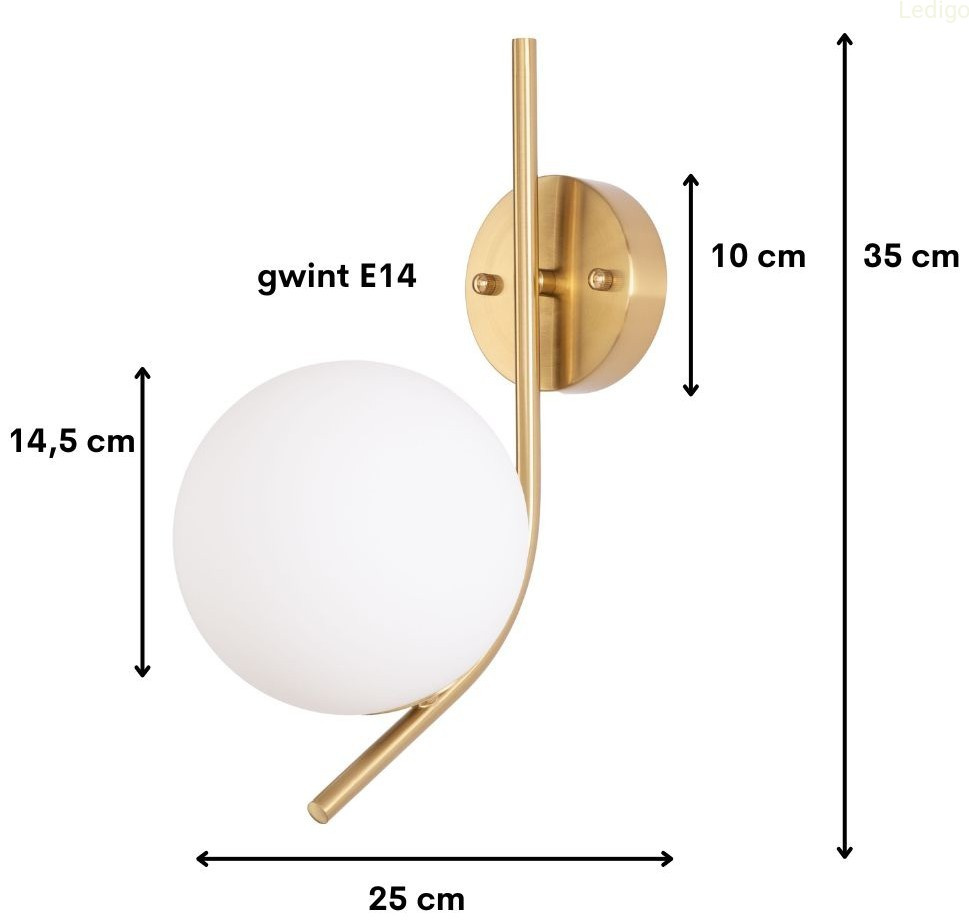 Kinkiet złoty Milano Aurora mleczna kula 1xE14