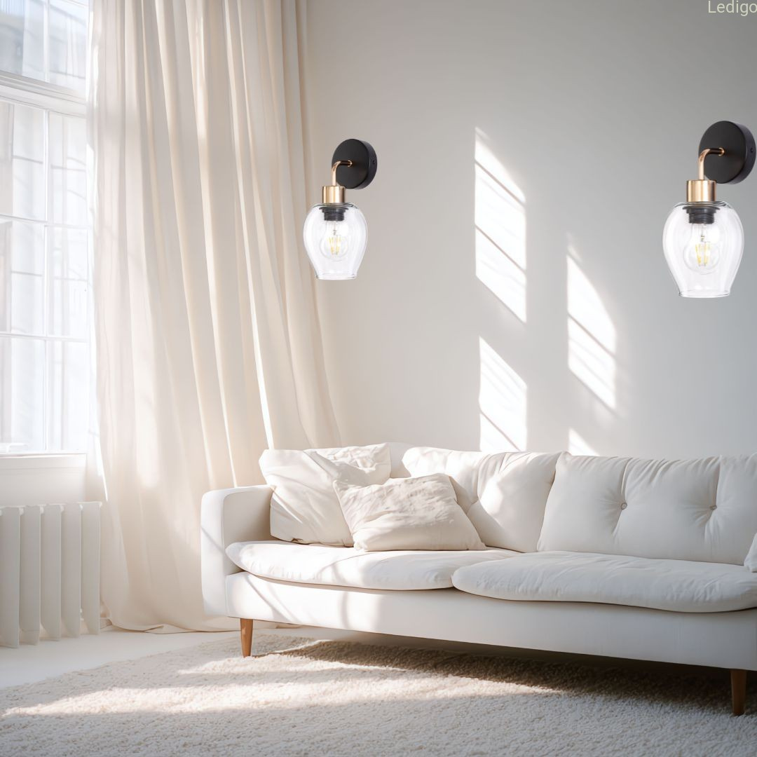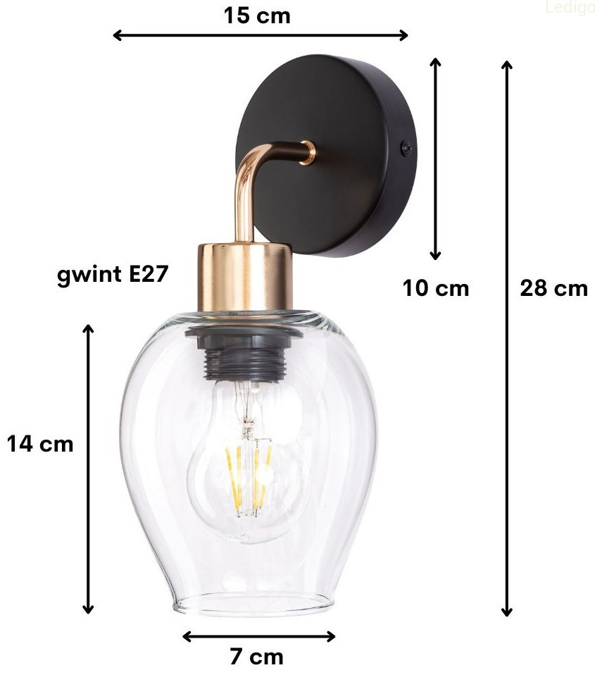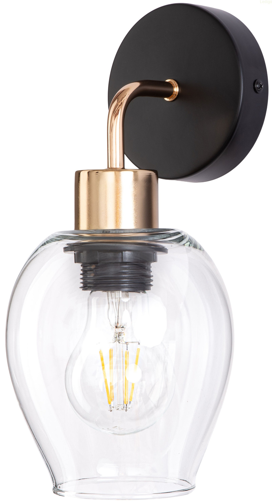 - Kolorystyka: Kontrastowe połączenie matowego, czarnego uchwytu ściennego i złotych detali nadaje lampie wyrafinowanego charakteru.