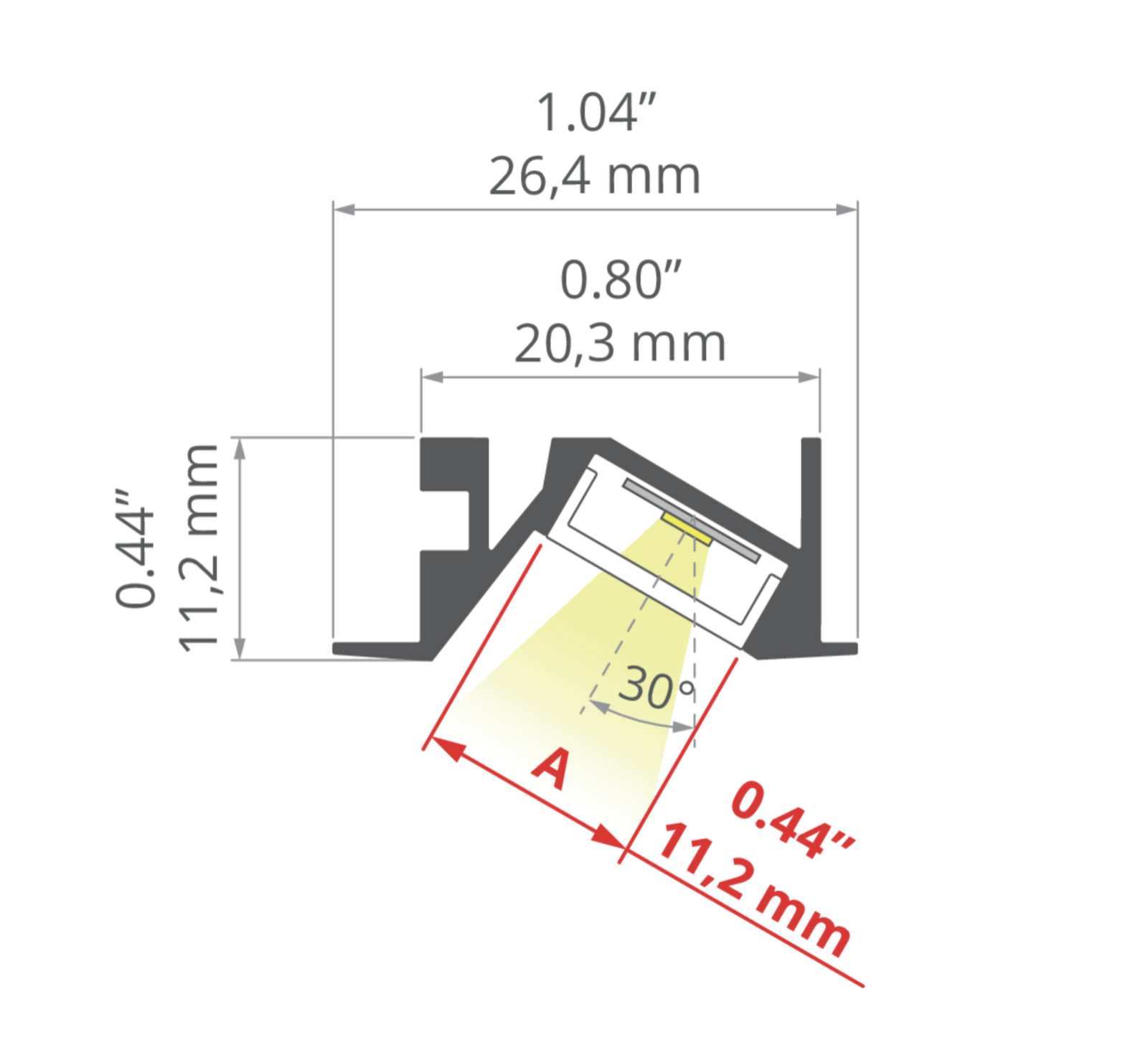 Profil wpuszczany kątowy meblowy Kluś MICRO-30DEG-K kąt świecenia 30 stopni surowy 1000mm
