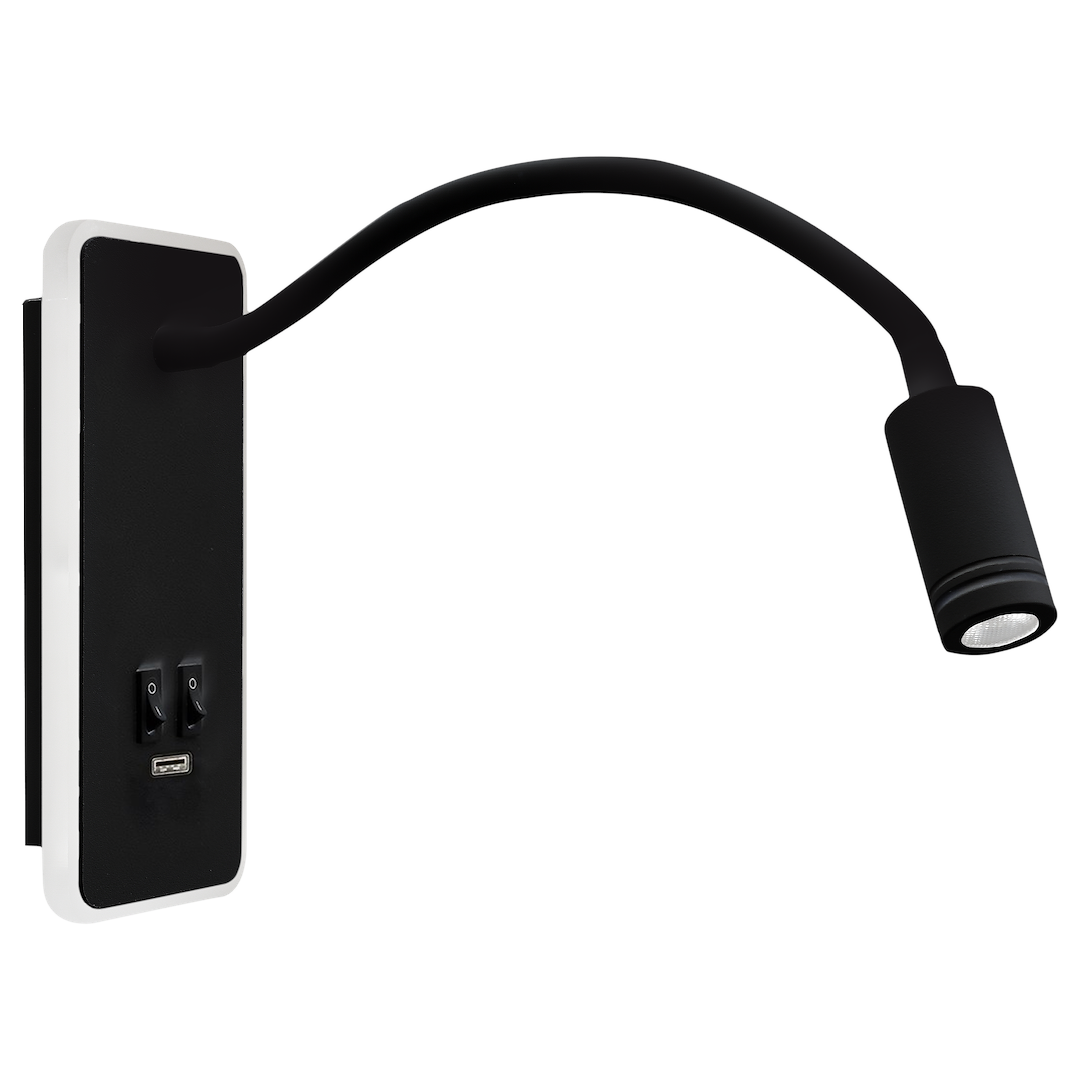 Lampka nocna Kinkiet LED Z USB BASE 8W+2W Black czarny