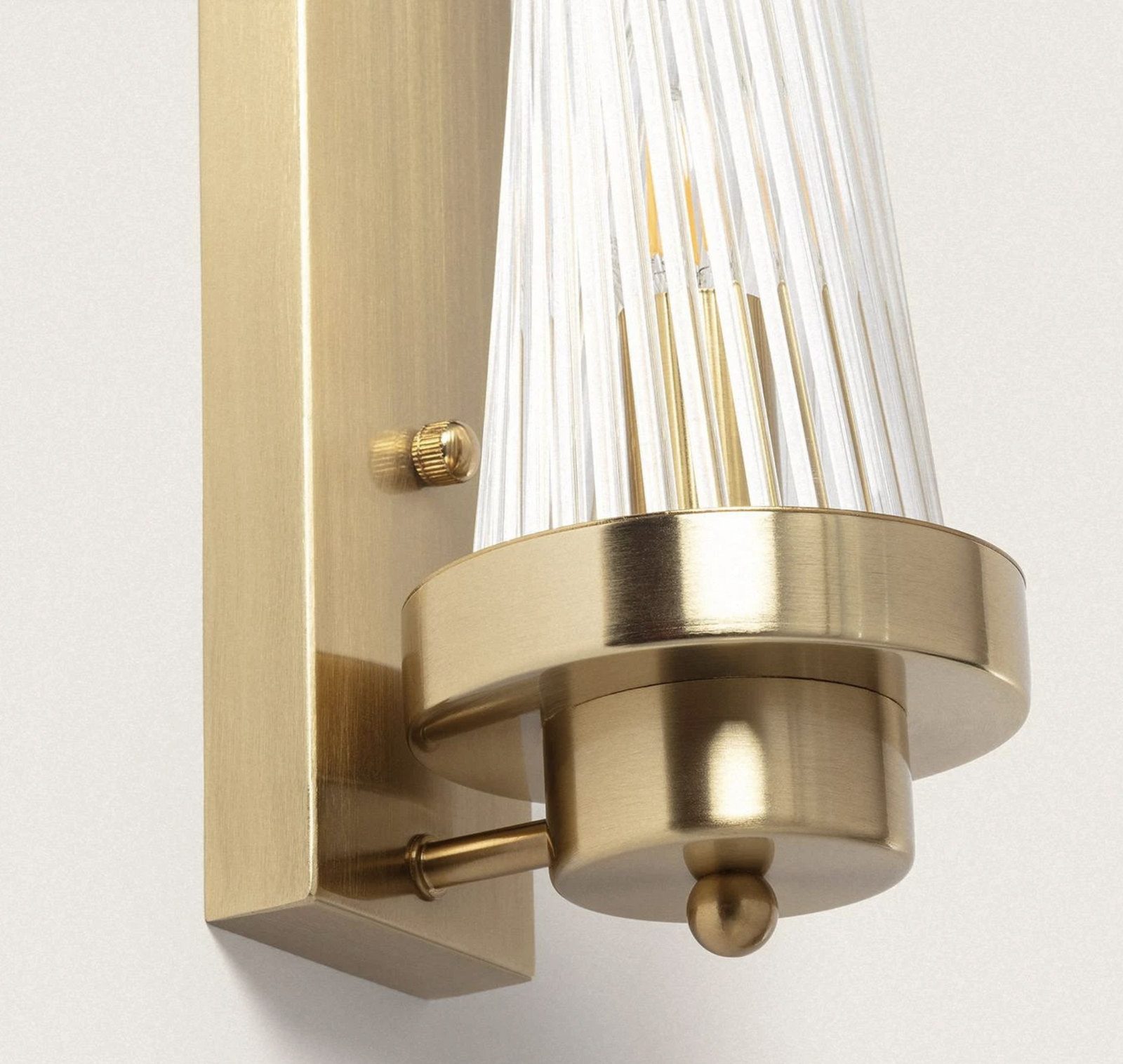 Lampa Ścienna z Metalu i Szkła Marsen ma prosty i elegancki kształt, który pozwala umieścić ją w pomieszczeniach w stylu glamour lub nowoczesnym. Materiały takie jak metal w połączeniu z cienkimi szklanymi sztyftami sprawią, że lampa Marsen idealnie wpasuje się w najróżniejsze pomieszczenia i dekoracje, będąc idealną opcją do oświetlenia korytarzy, salonów, sypialni czy nawet restauracji czy przestrzeni rekreacyjnych.